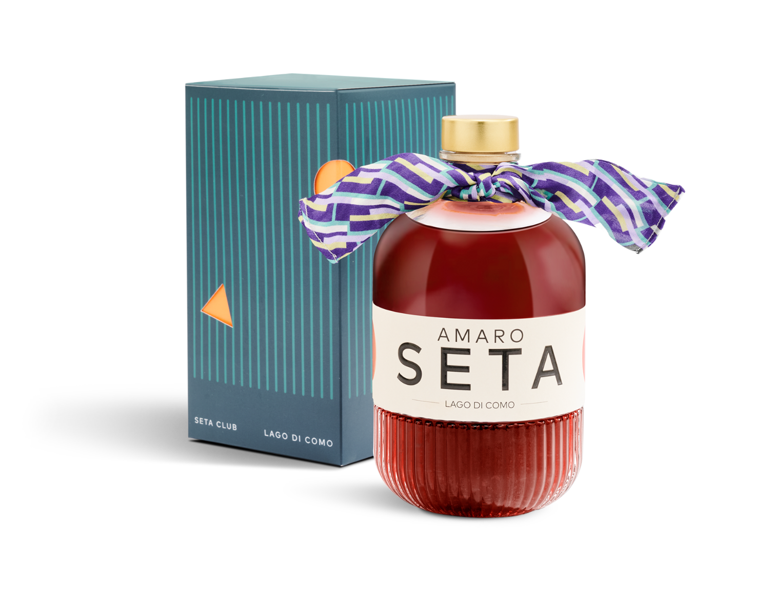 Amaro Seta si trasforma nei drink, svelando un gioco di sfumature che danzano come i riflessi dorati del lago al tramonto.